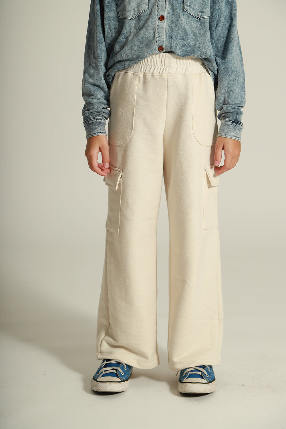 Com elástico na cintura e bolsos cargos laterais, esta calça oferece praticidade e funcionalidade para acompanhar sua filha em todas as suas aventuras. Sua modelagem moderna e ampla proporciona liberdade de movimento, garantindo conforto durante todo o dia. Confeccionada em moletinho de algodão de gramatura leve.