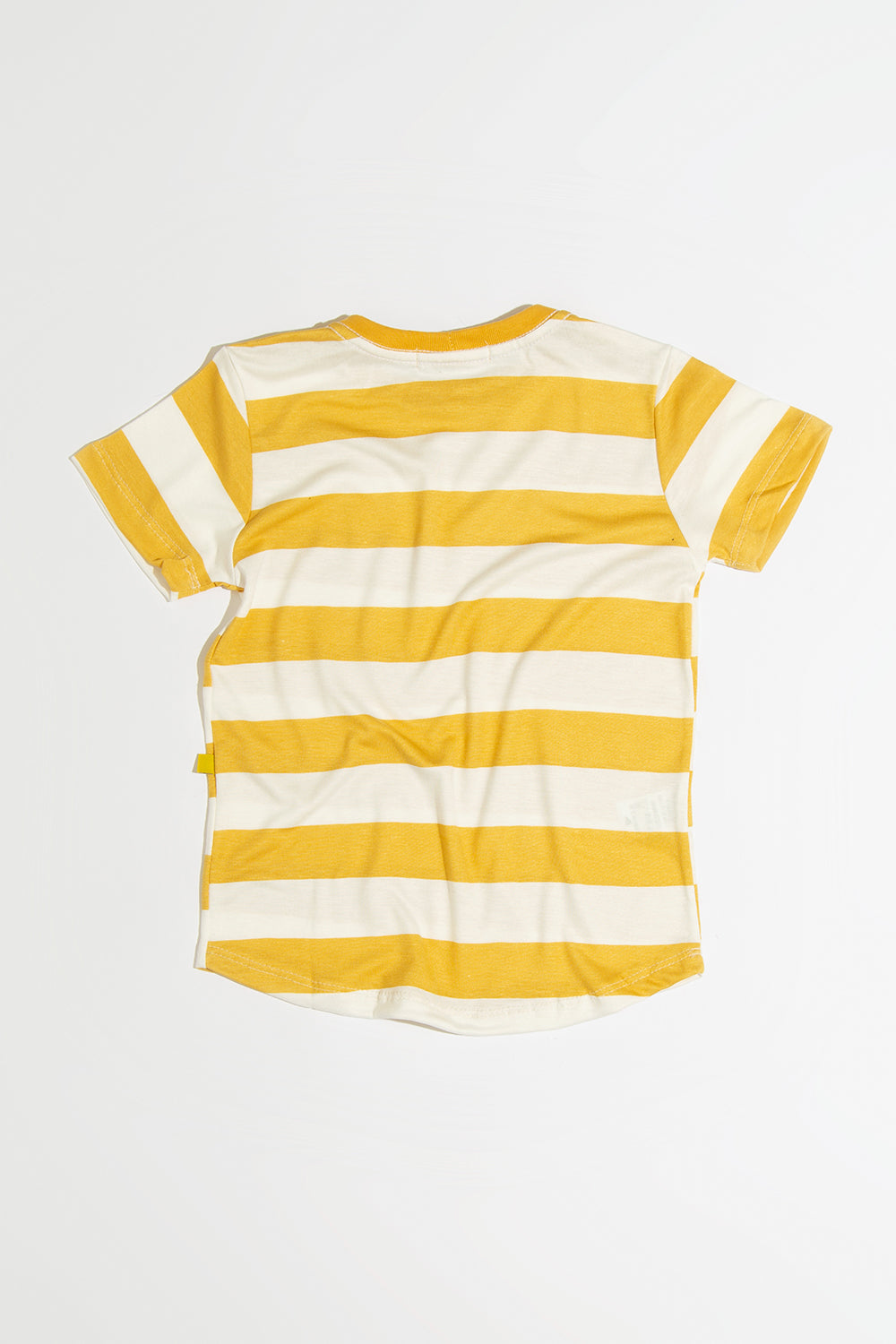 Além do toque fresco, a camiseta possui um design encantador, com listras vibrantes em tons suaves de off e amarelo mostarda. Ela é perfeita para adicionar um toque de estilo ao visual das crianças, permitindo que elas se expressem de maneira única.