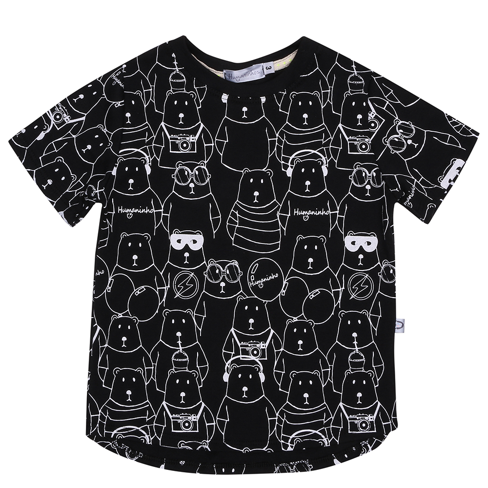 Camiseta confeccionada em malha 100% algodão na cor preta. Estampa exclusiva Ursos na frente e costa na cor branca
