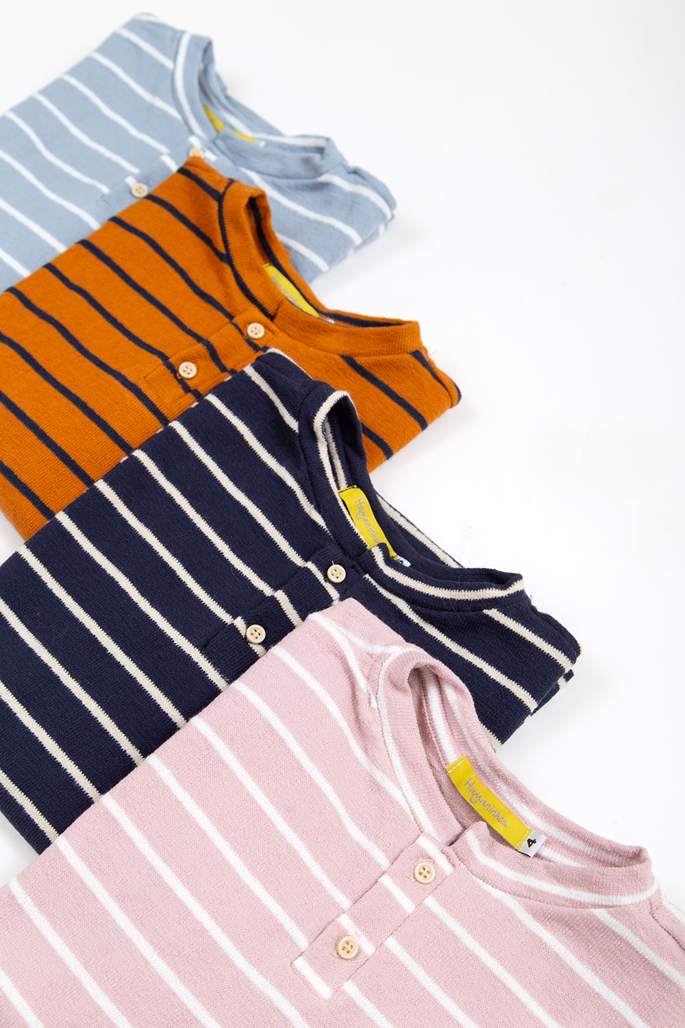 O modelo conta com decote redondo e abertura estilo polo com fechamento por botões, trazendo um toque clássico e versátil para o look dos pequenos. Ideal para compor camadas ou usar sozinho em produções que pedem estilo e praticidade.