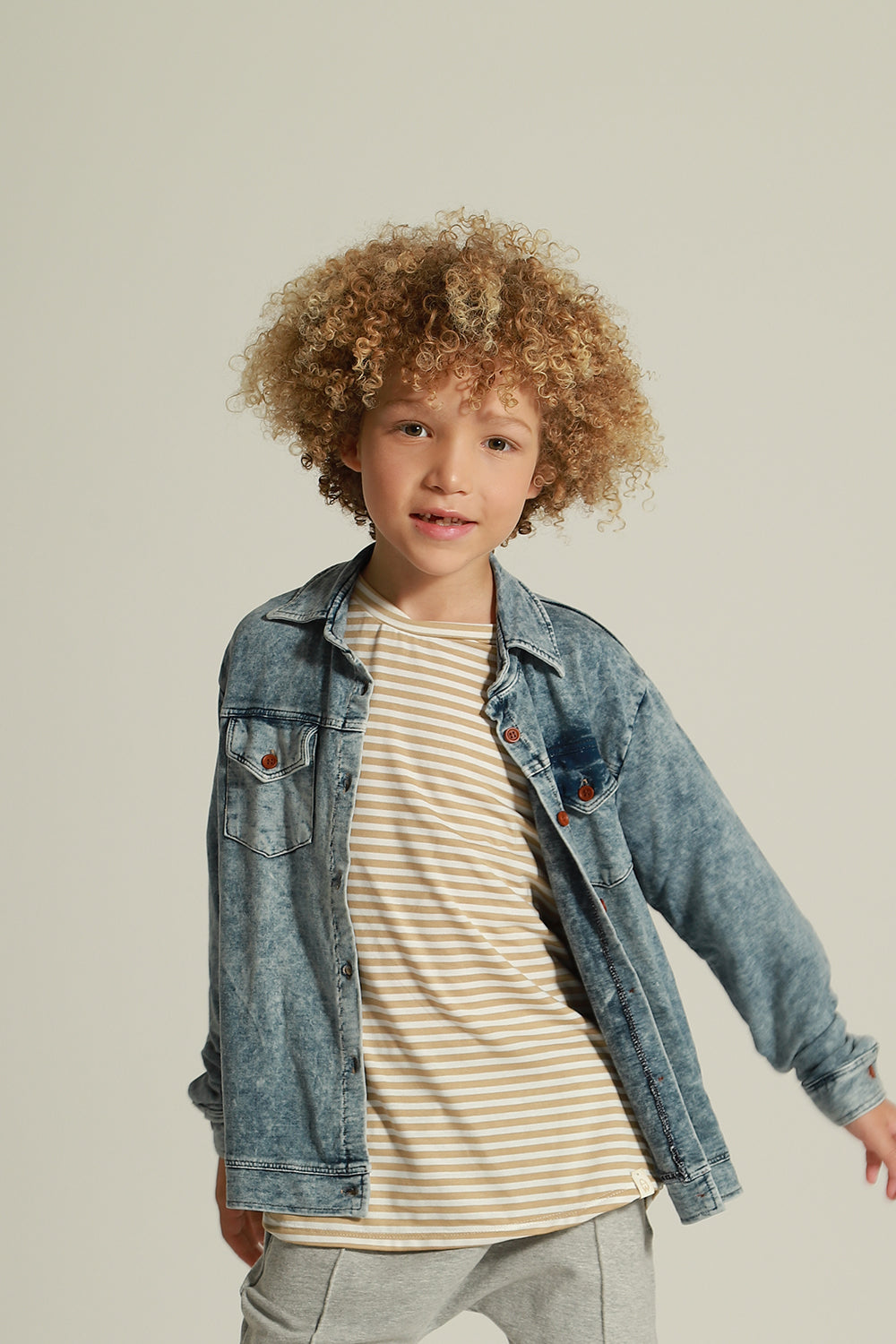 Deixe seu pequeno confortável e estiloso com a Camiseta Infantil Mini Listra Areia.