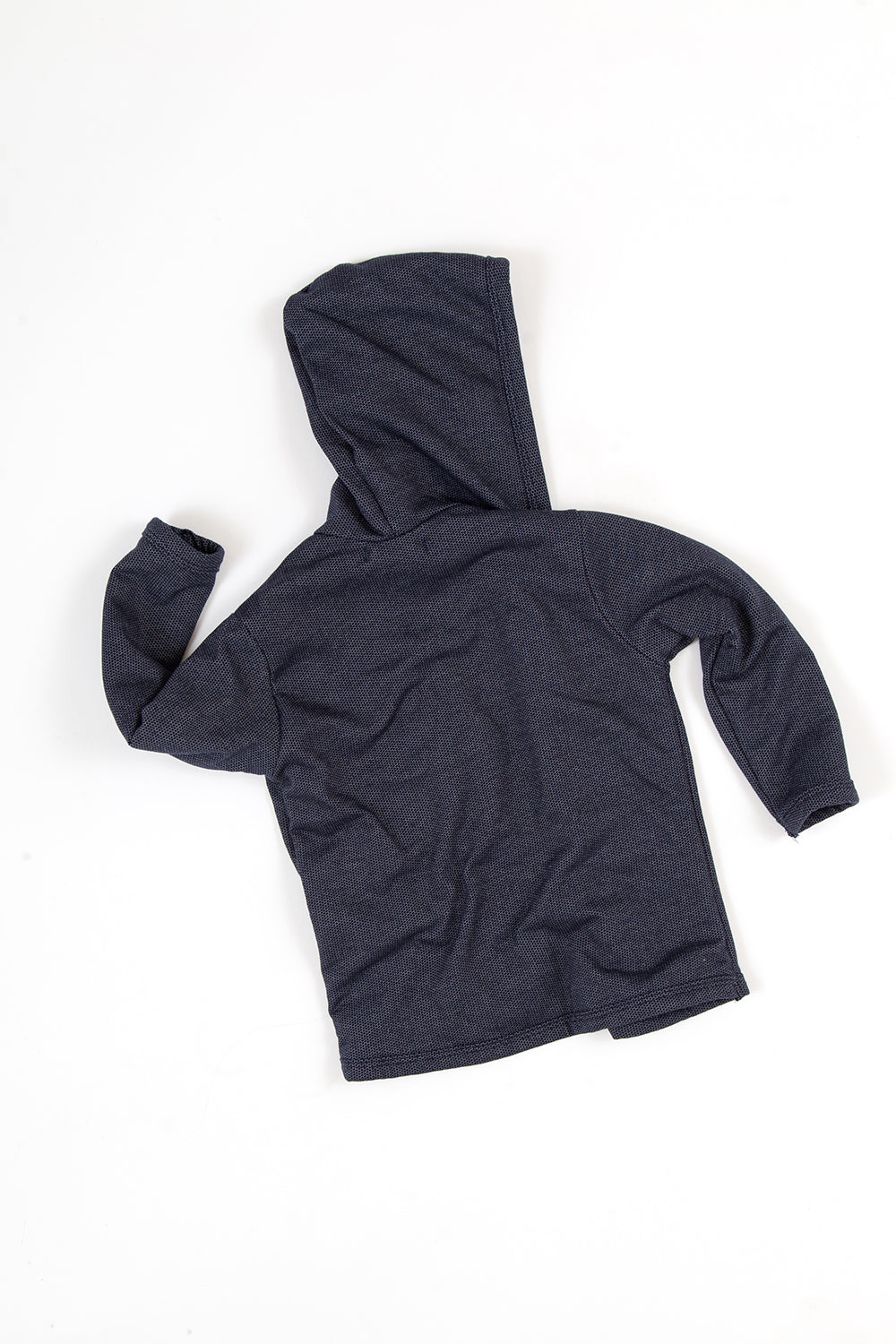 Para os dias mais frios, um casaco quentinho e cheio de estilo! Esse modelo une conforto e versatilidade com sua camada dupla: por fora, malha piquet que remete ao denim, e por dentro, forro peluciado super macio que aquece de verdade. A cor marinho é curinga e combina com tudo, do look mais casual ao mais arrumadinho. Capuz funcional, fechamento com botões de madeira e modelagem confortável completam a peça — ideal para brincar, passear e se proteger do frio com muito charme.
