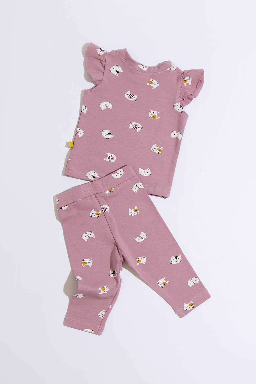 Conjuntinho Bebê Gatinhos, uma escolha adorável para as pequeninas que buscam conforto e estilo. Com uma calça leggings super fofa e uma camisetinha regata cheia de charme, este conjunto é perfeito para os dias cheios de descobertas.