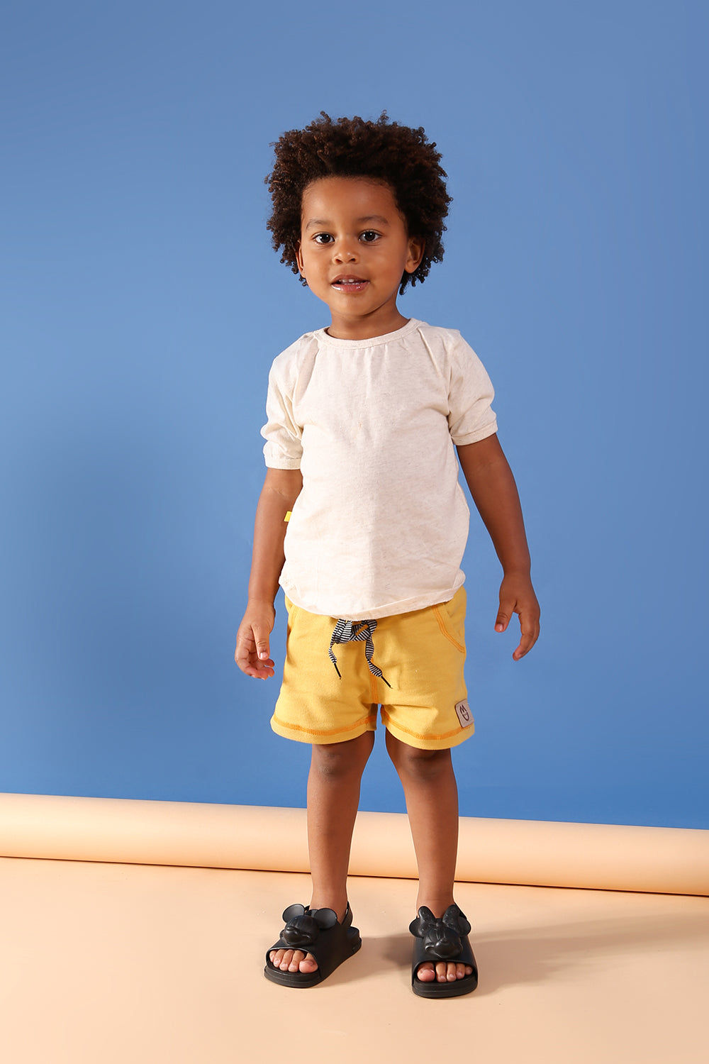 Camiseta Ultra Soft Natural infantil lisa unissex confeccionada em linho com viscose na cor natural off white.