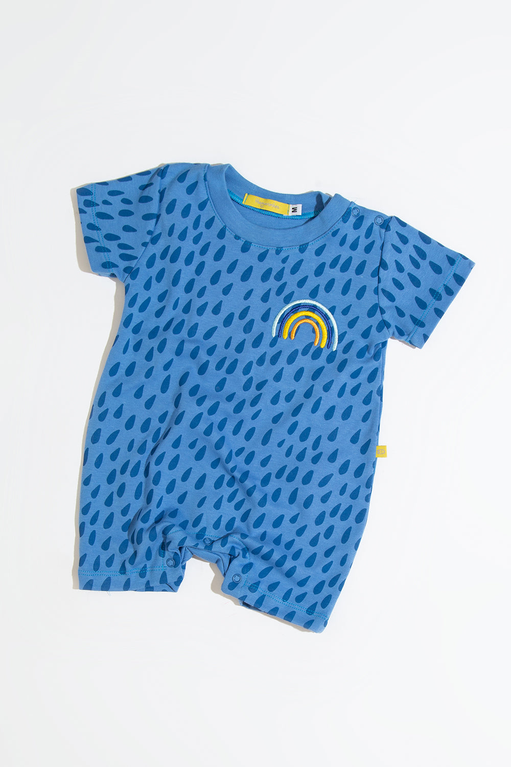 Romper unissex bebê, inspirado no suave encanto das gotinhas de chuva. Confeccionado em malha suedine macia 100% algodão orgânico, este romper proporciona conforto absoluto para a pele delicada do seu pequeno.