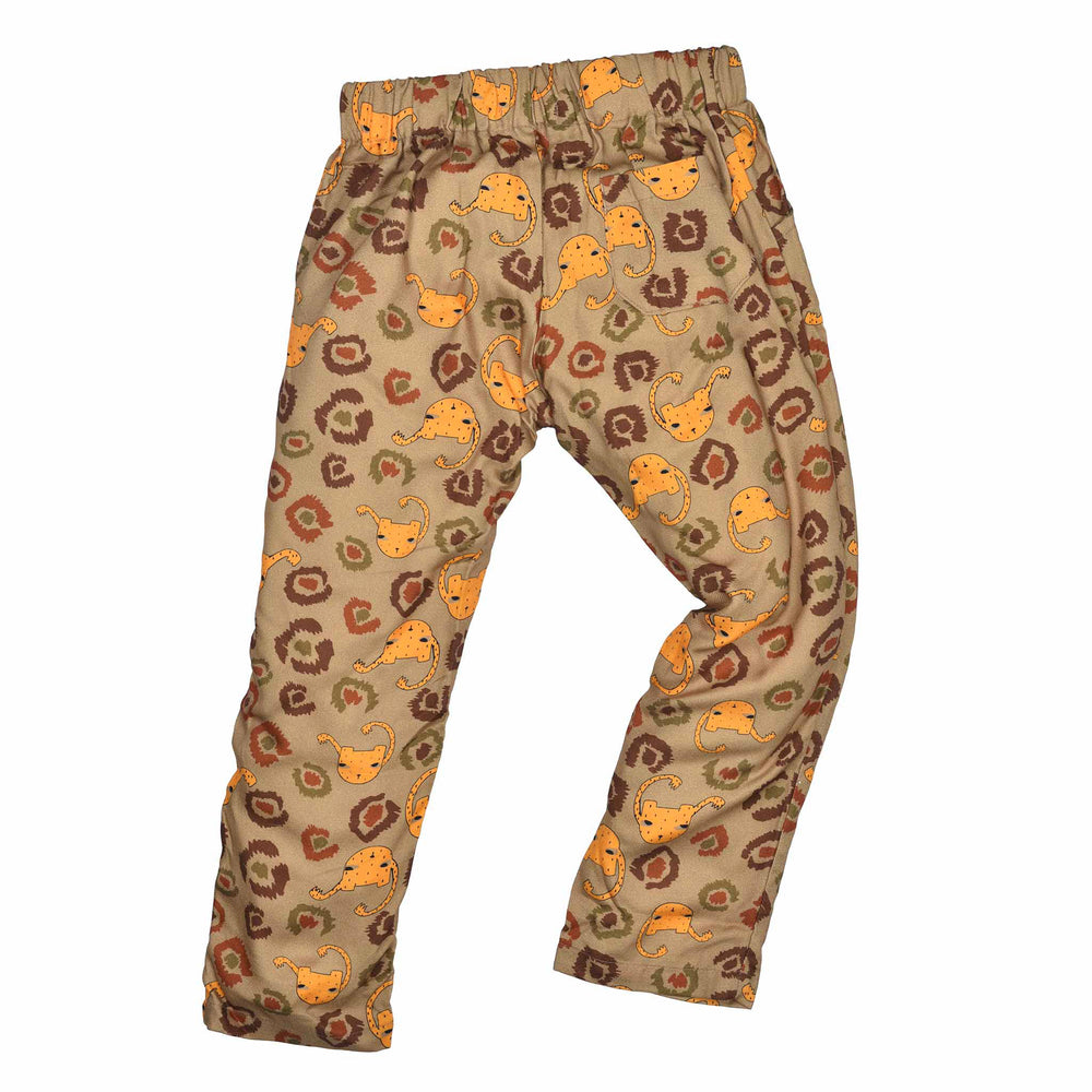 Calça infantil confeccionada em viscose estampada com tigrinhos. Possui elástico na cintura, bolsos frontais e um bolsinho atrás. A viscose é uma fibra natural que confere às peças um ar fresco e confortável, perfeito para ser usada em dias de verão.