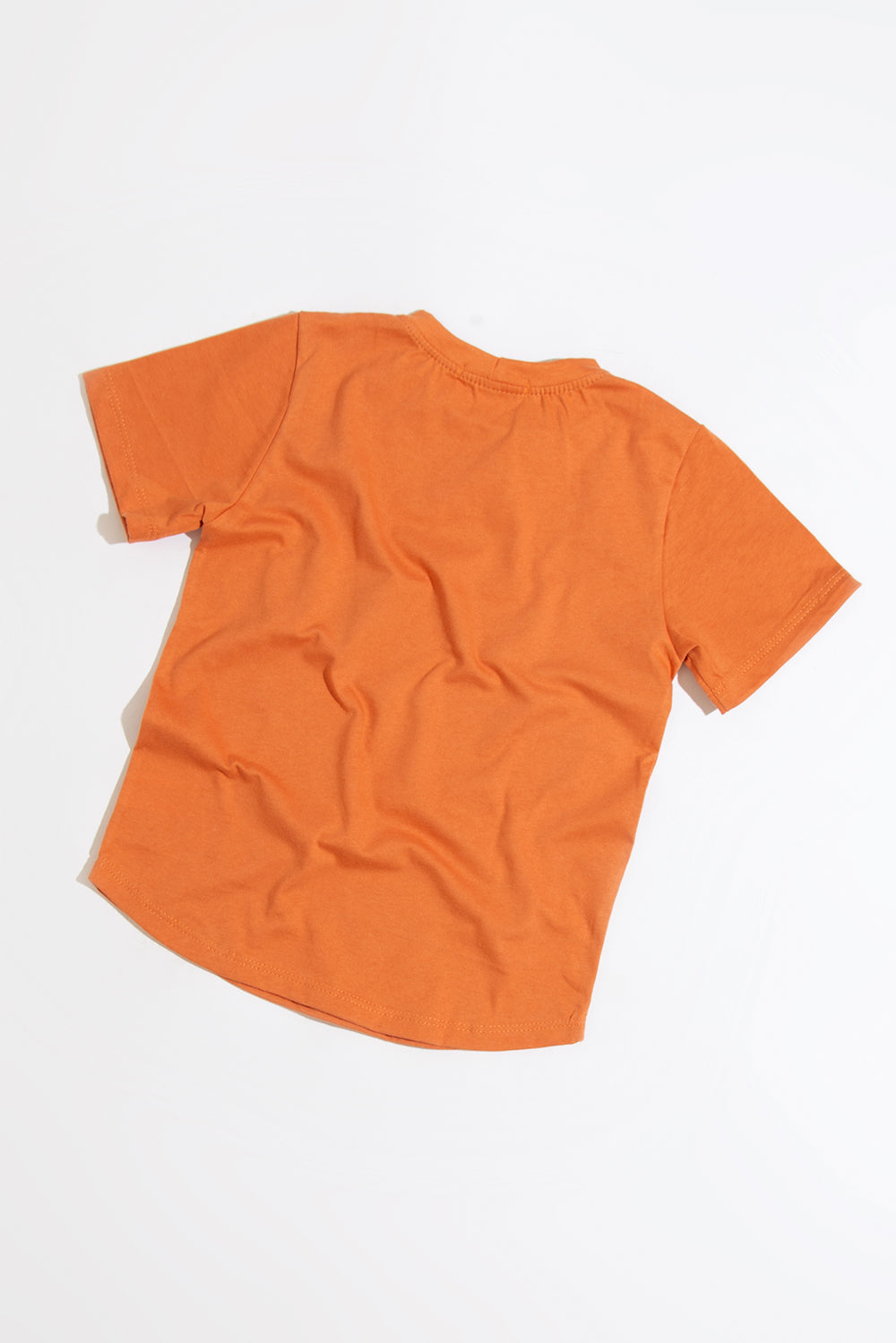 Camiseta manga curta infantil, confeccionada em macia malha de algodão para garantir conforto durante todo o dia. A tonalidade canela avermelhado adiciona um toque sofisticado e quente ao guarda-roupa dos pequenos, proporcionando estilo e bem-estar.